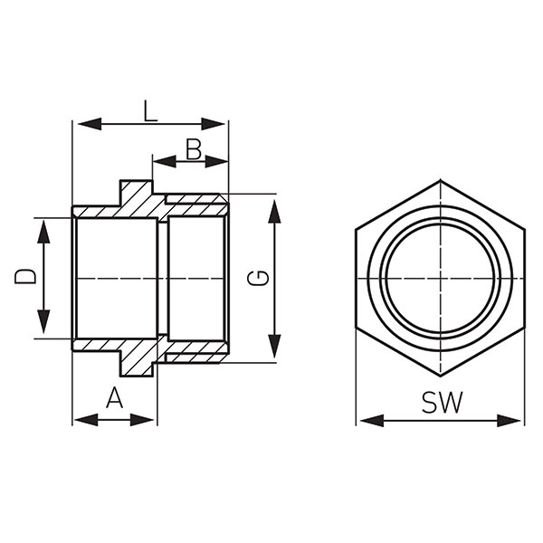 Niplu alama pentru racordare teava fier/plastic la teava cupru