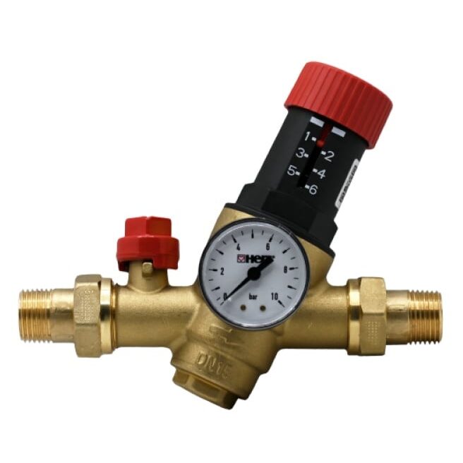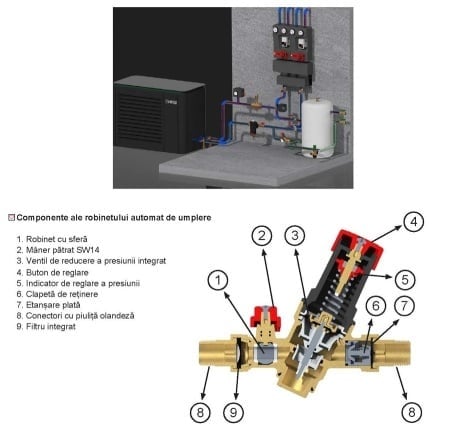 Robinetul automat de umplere este instalat în cadrul instalației de alimentare cu apă a sistemelor de încălzire etanșe, în principal pentru a menține presiunea stabilă a sistemului la o valoare predeterminată prin adăugarea automată de apă atunci când este necesar.În timpul procesului de umplere sau de completare, alimentarea cu apă se oprește automat în momentul în care este atinsă presiunea dorită. Presiunea dorită poate fi ușor setată înainte de instalare cu ajutorul butonului roșu situat pe partea superioară a robinetului. Presetarea din fabrică este fixate la 1,5 bar pentru confort, dar poate fi ajustată în funcție de cerințele specifice într-un interval de la 1,5 la 6 bar.Pentru un control îmbunătățit, robinetul cu sferă integrat permite închiderea perfectă a robinetului de umplere, îmbunătățind atât confortul, cât și siguranța. În plus, clapeta de reținere încorporată asigură faptul că apa din sistemul de încălzire rămâne separată de alimentarea cu apă potabilă, păstrând calitatea și siguranța apei.Indicatorul de presiune integrat permite monitorizarea ușoară a presiunii din sistem, oferind o stare de liniște și un control precis.