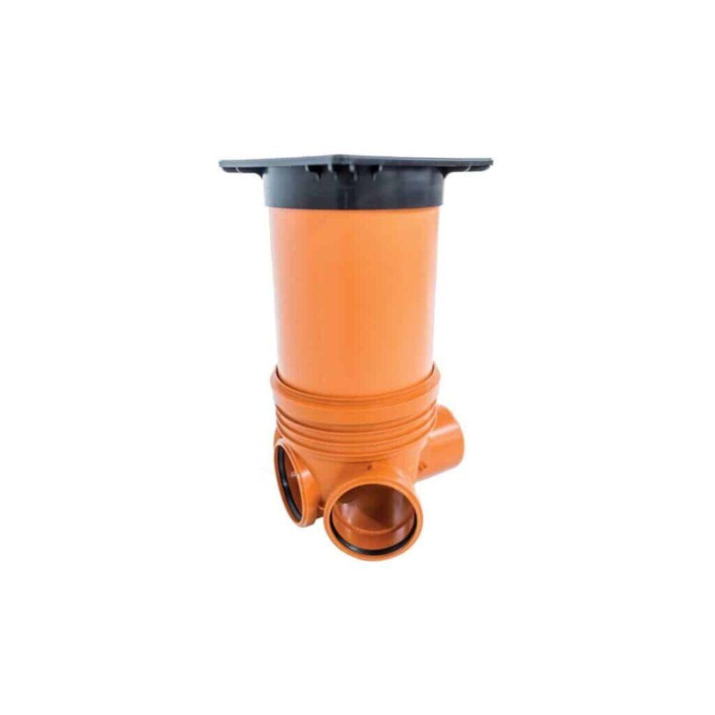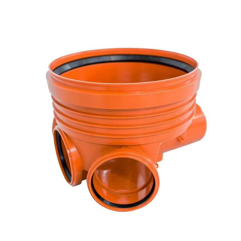 Baza camin canalizare cu 3 intrari si 1 iesire cu diametrul de 110 mm, este realizata din PP, fiind destinata pentru utilizarea in sistemele de canalizare exterioara. Acesta se monteaza in subteran si permite vizitarea, racordarea, pentru rupere panta, inspectie si curatarea retelelor canalizare, drenaj, alimentare cu apa si de telecomunicatii.