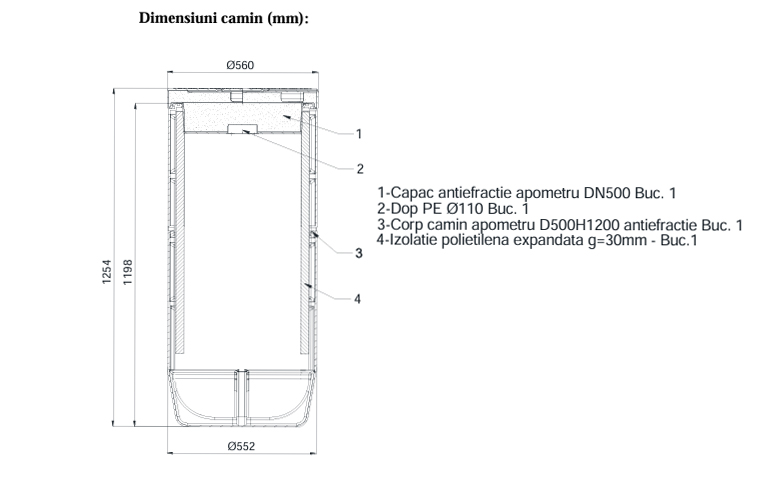 Camin apometru izolat cu capac antiefractie D500mm H1200mm neechipat Teraplast