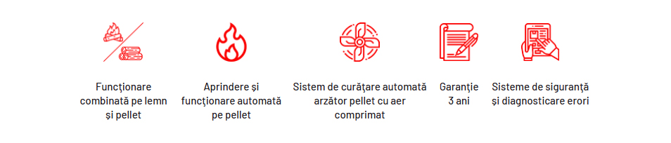 - Kit opțional cu două uși pentru trecerea facilă de la peleți la lemne