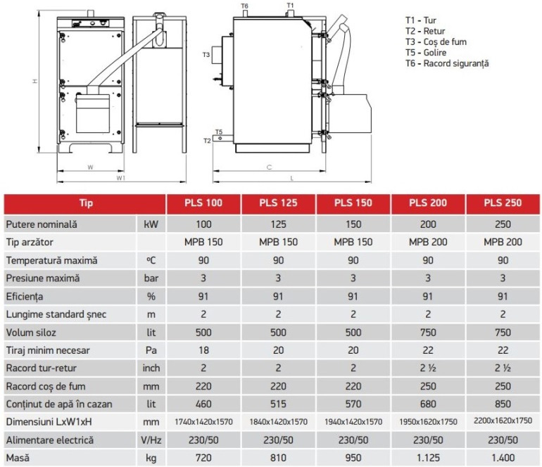 PLS este oferit ca si pachet complet cu dimensiuni reduse ce include: cazan, arzator automat pellet, snec si siloz pentru combustibil.