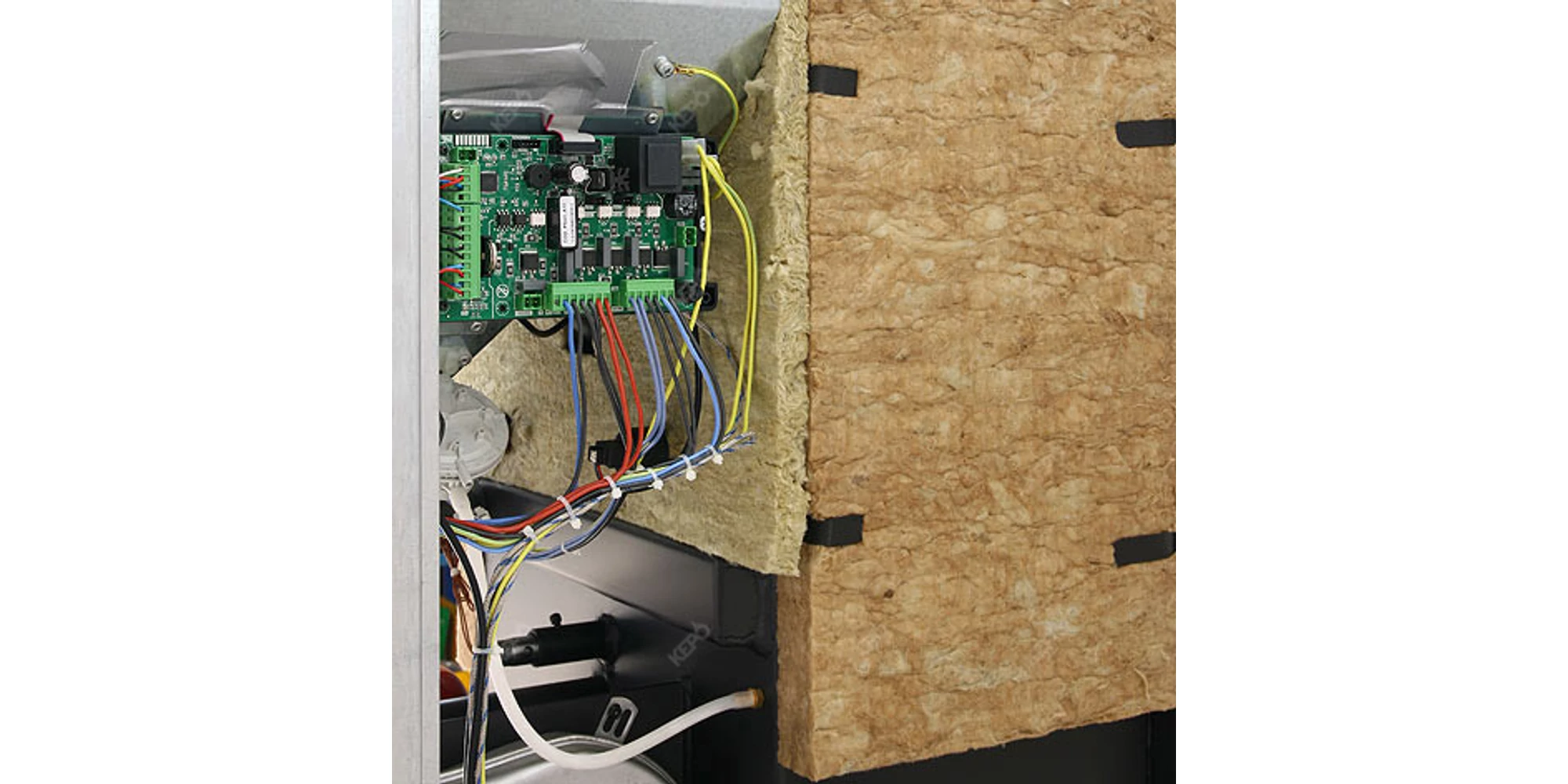robinete de umplere si de golire, supapa de siguranta, vas de expansiune si pompa de apa. Obligatoriu trebuie instalata o vana termostatica de amestec 40-70 °C pentru a asigura cerintele garantionale si pentru o durata de viata utila mult mai mare a cazanului.