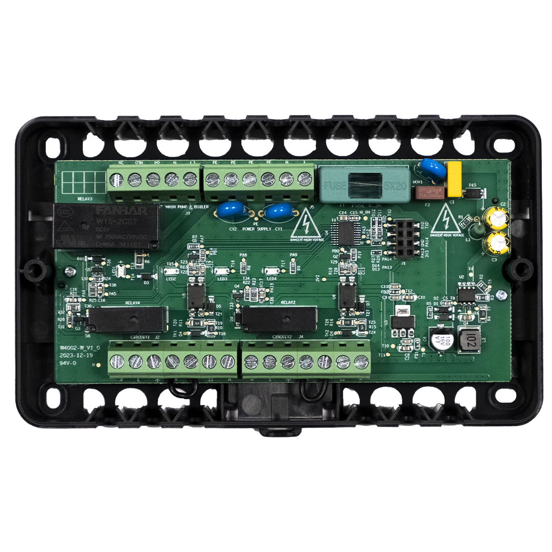 • Două zone, un singur controler: Permite controlul independent al două circuite de încălzire, de exemplu, parterul și etajul.