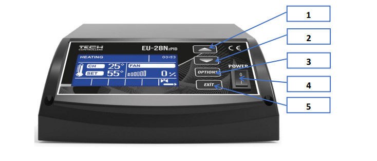 Controlerul PID EU-28N este proiectat pentru cazanele CH. Acesta controlează pompa de circulație a apei CH, pompa de apă caldă menajeră DHW și suflarea (ventilatorul). Dacă temperatura cazanului este mai mică decât temperatura setată, regulatorul se află în ciclul de funcționare, în care suflanta funcționează în permanență.