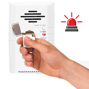 În timp ce țineți apăsat butonul brichetei, apropiați bricheta de intrarea de gaz a detectorului și eliberați gaz încet (nu aprindeți bricheta, doar lăsați gaz să iasă). Când concentrația de gaz din preajma senzorului atinge standardul, va declanșa alarma care va suna până când volumul gazului din mediu va scădea sub punctul de alarmă.