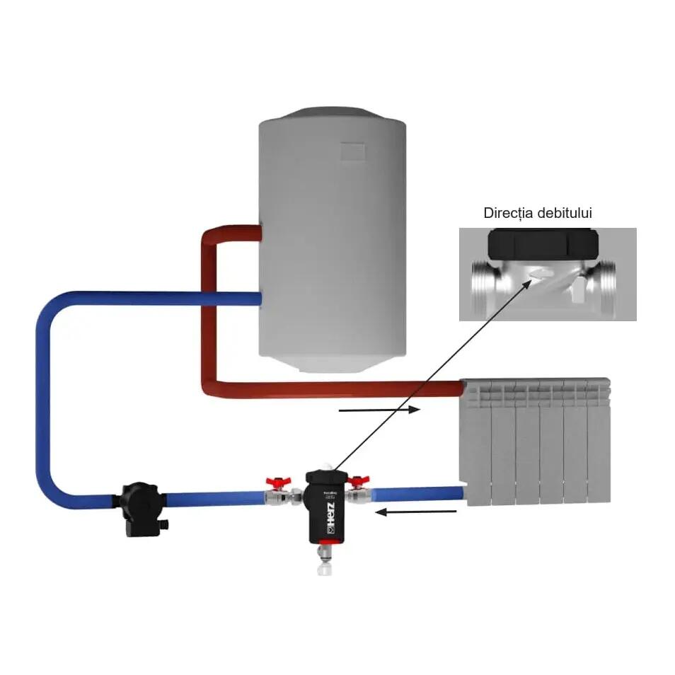 - Instalare flexibilă: Filtrul este proiectat pentru o instalare ușoară, de obicei pe returul instalației, înaintea cazanului și a pompei de circulație.