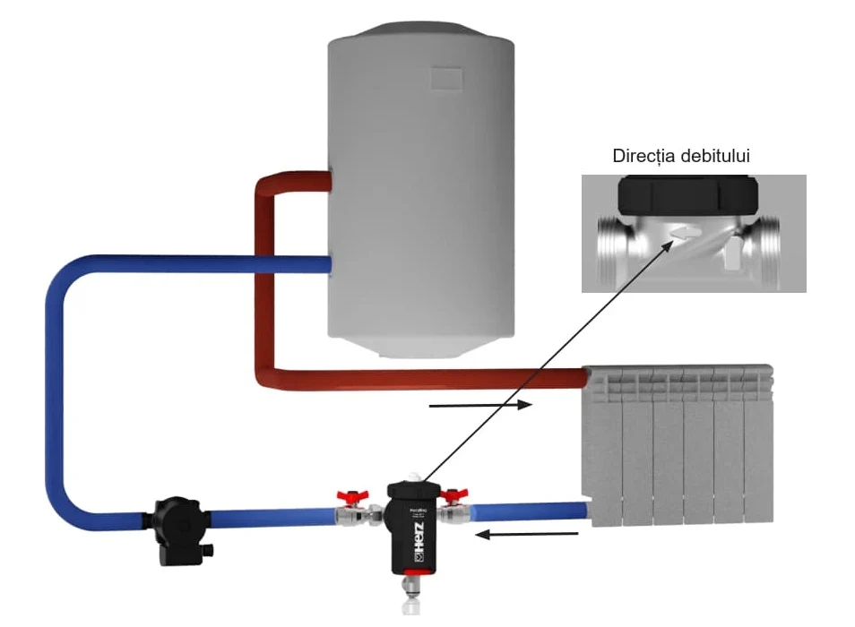 Este de preferat să fie instalat pe circuitul de retur, în amonte, după radiator și înaintea cazanului și a pompei de circulație, astfel încât particulele să poată fi captate înainte de a ajunge la cazan și la pompa de circulație.
