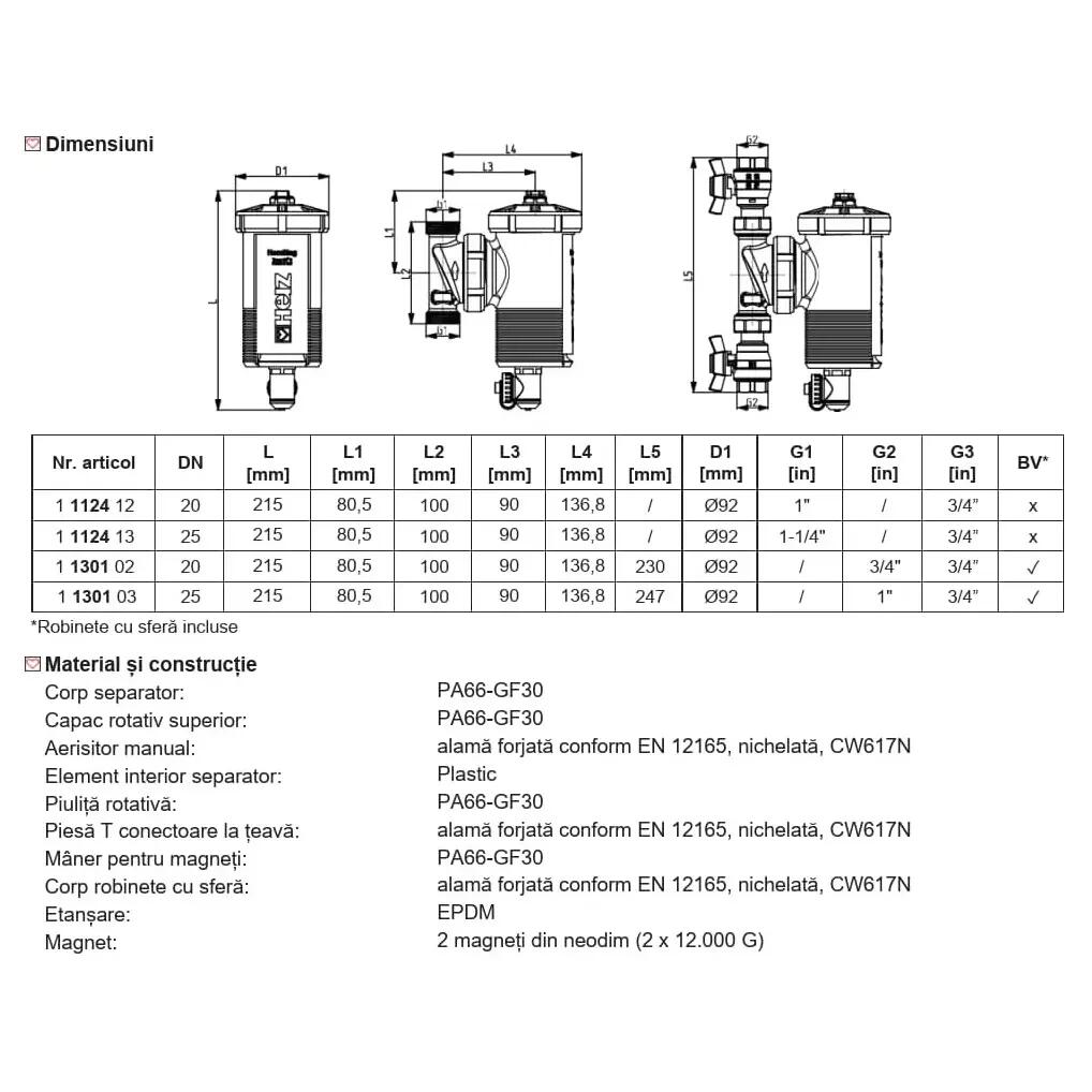 Principiul de funcționare:Dispozitivul utilizează doi magneți puternici din neodim, fiecare cu o forță de 12.000 de Gauss. Acești magneți atrag și captează eficient particulele feroase (șlam, magnetit, rugină) care circulă prin lichidul din instalație. În același timp, filtrul este echipat cu un aerisitor automat sau manual, care elimină bulele de aer din sistem, prevenind astfel coroziunea și zgomotele nedorite.