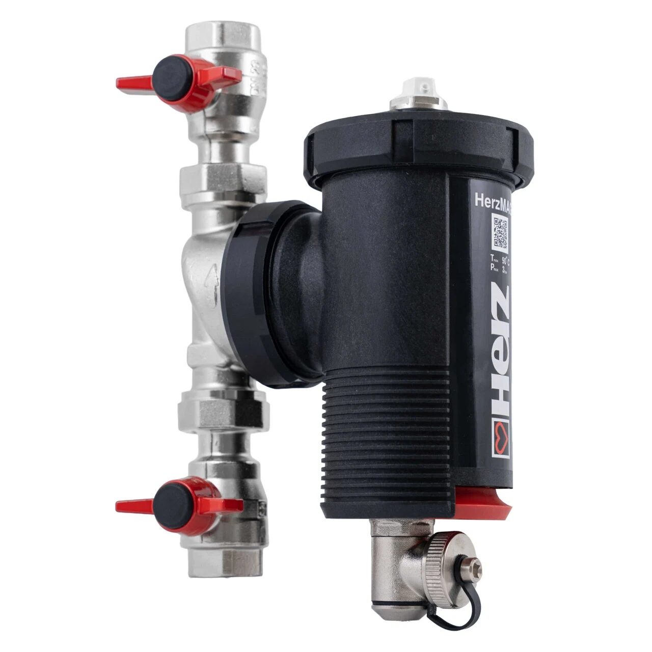 - Protecție superioară: Echipat cu doi magneți puternici din neodim (12.000 Gauss fiecare), HERZMAG captează eficient particulele de oxid de fier (magnetit) și alte impurități metalice din fluidul circulant.