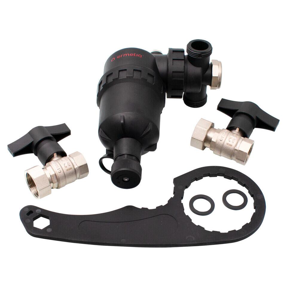 Filtru este proiectat pentru a fi instalat pe returul circuitului centralelor de incalzire cu scopul de a elimina impuritatile care circula in conducte si care reprezinta un real pericol pentru instalatie si centrala termica. Acest produs poate indeparta atat resturile de namol sau nisip, prin intermediul unei site, cat si cele mai mici reziduri feroase datorita magnetului puternic introdus in interior. Impuritatile astfel separate pot fi ulterior eleiminate prin deschiderea dispozitivului de evacuare a filtrului si indepartand in acelasi timp magnetul.