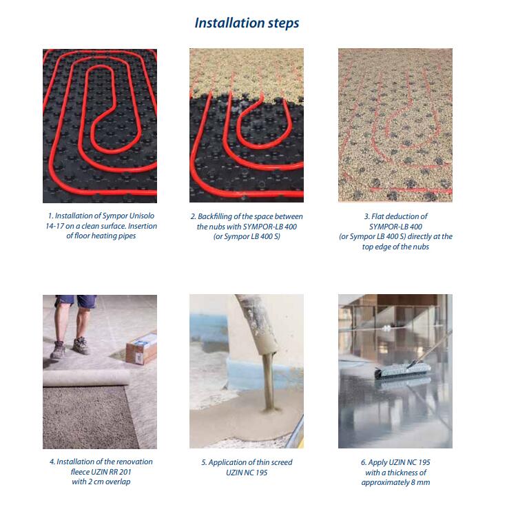 Panou termoformat ondulat din polistiren expandat, prevazut cu pelicula de protectie din PS de 0,6 mm, rigida, antisoc si de culoare neagra si reliefuri de un anumit profil pentru o ancorare stabila si sigura a tubului imbinare nut pe nut pentru montare rapida si fara punti termice. Prevazut cu reliefuri pentru blocarea tubului Pex si peX-AL-Pex pentru diametrele optime de 17 si 18, distanta de montare de 50 mm si multiplii acestuia. Deosebit de rezistent la stropiri datorita foilor izolante etanse suprapuse. Furnizat sub forma de placi.