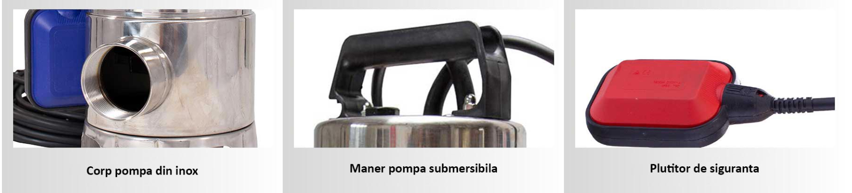 - carcasa pompa, turbina si axul pompei fabricate din materiale inoxidabile pentru a evita aparitia coroziunii