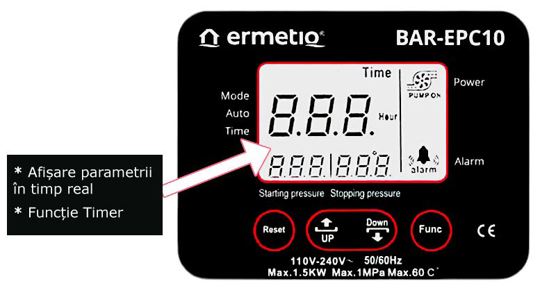 - Afisaj digital: Monitorizare facila si setare rapida a parametrilor de functionare.