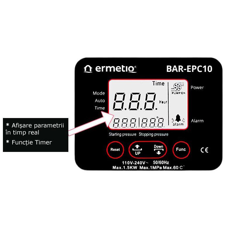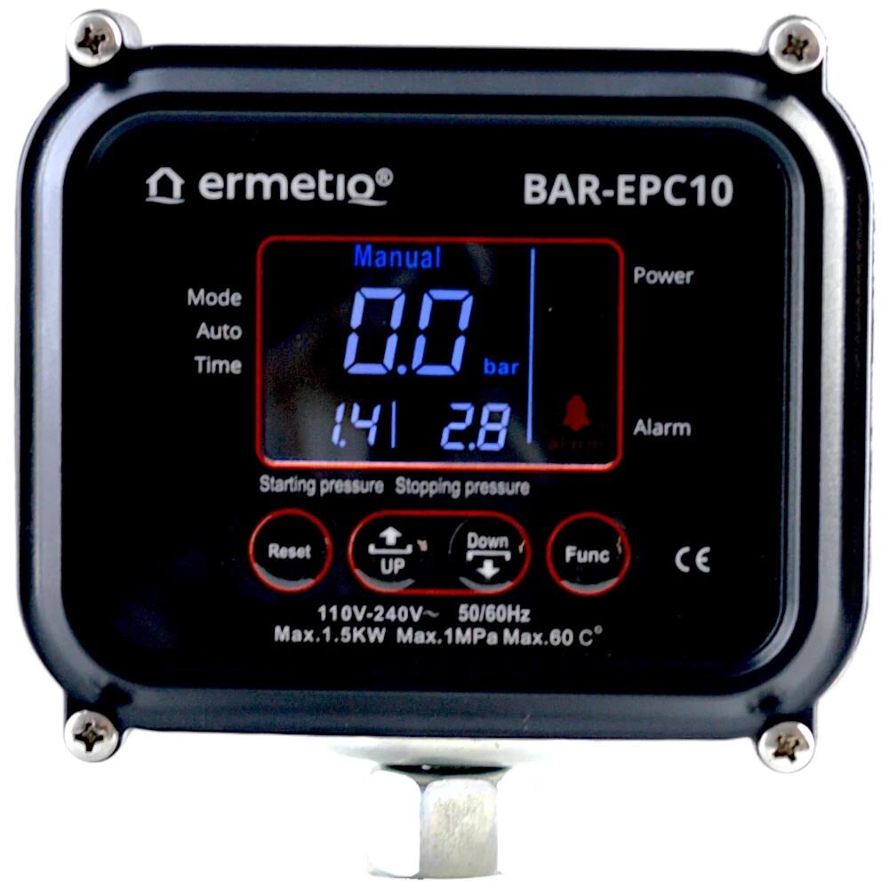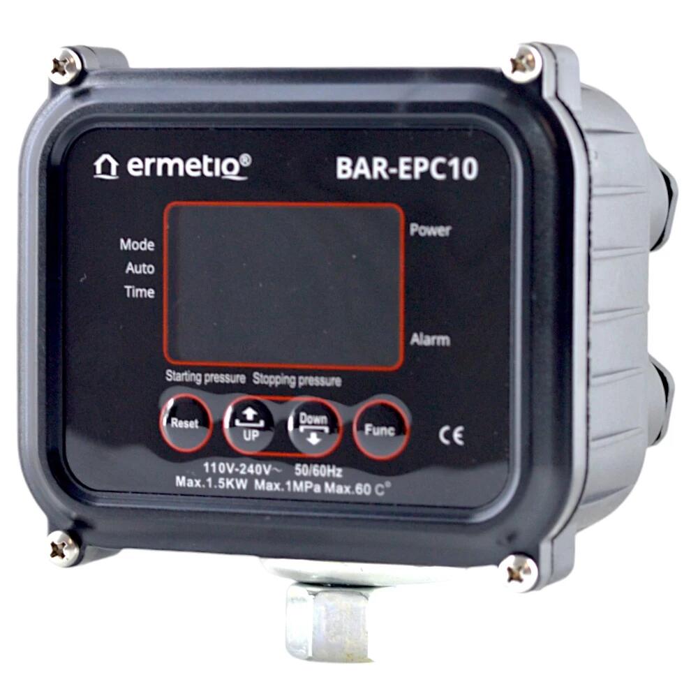 Presostatul Ermetiq BAR-EPC10 este un accesoriu de incredere pentru gestionarea automata a pompelor de apa, oferind o experienta de utilizare sigura si personalizabila pentru toate necesitatile legate de alimentarea cu apa.