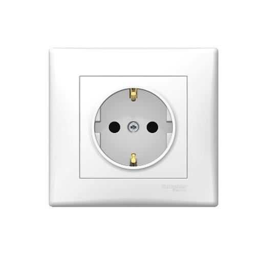 Priza simpla cu impamantare alba, incl. rama