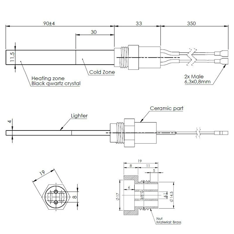 Rezultatul dezvoltării și experienței îndelungate, rezistențele cu cristal de cuarț negru sunt cea mai bună soluție de pe piață pentru a aprinde peleții. Cu doar o mică parte din energia necesară, rezistența cu cristal de cuarț negru aprinde peleții în câteva secunde. Cu o temperatură considerabil mai mare decât rezistențele metalice și ceramice, aprinderea este redusă la mai puțin de 60 de secunde. Acest lucru reduce consumul de energie al sistemului. Întreținerea va fi cu atât mai simplificată. Rezistența de aprindere cu cristal de cuarț negru este realizat dintr-o flanșă care permite trecerea aerului de ardere. Cu această structură unică, aerul ambiental injectat în tubul suport al aprinderii) trece de la 25°C la 1000°C în câteva secunde, iar viteza de aprindere este înmulțită cu 2.