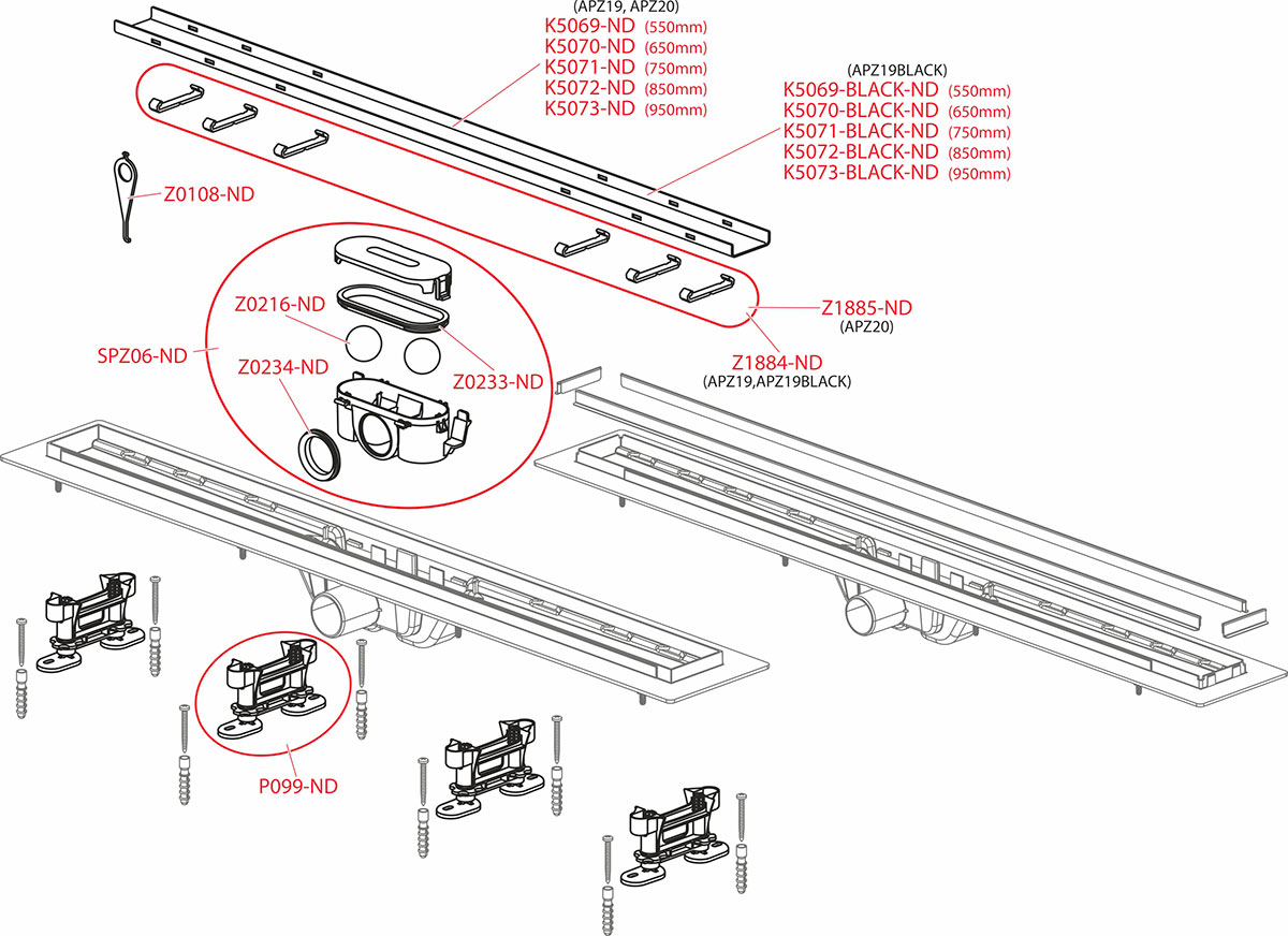Rigola dus echipata L65 ALCAPLAST APZ20 650