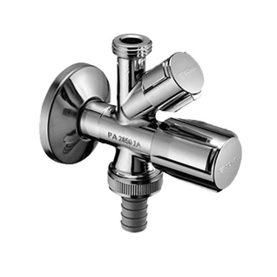 Acest tip de robinet coltar combinat poate fi folosit pentru racordarea simultana a unei baterii de lavoar, sau spalator , respectiv a unei masini de spalat rufe sau vase.