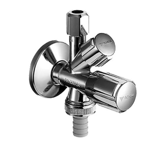 Acest tip de robinet coltar combinat poate fi folosit pentru racordarea simultana a unei baterii de lavoar, sau spalator, respectiv a unei masini de spalat rufe sau vase.