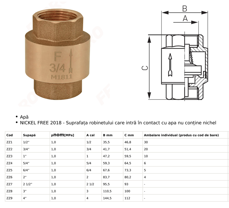 • supapele se pot monta atât în pozitie verticala cât si orizontala, respectându-se sensul de circulatie al apei