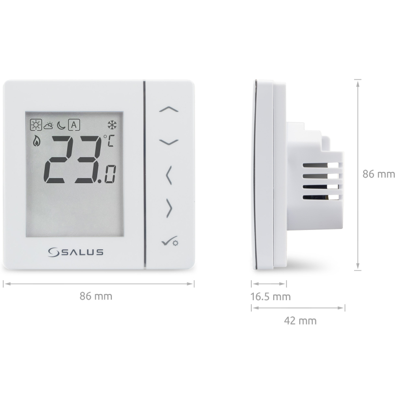 Un termostat neprogramabil Salus VS35W este perfect pentru aceste sisteme, poate controla atât de eficient încălzirea zonală. Atâta timp cât termostatul este montat într-un loc potrivit și nu foarte aproape de surse de căldură, el va interpreta corect temperaturile din camere.