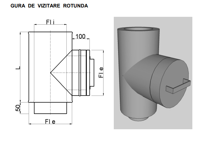 Teu inox 90 cu racord vizitare D180 DP izolat NIKO
