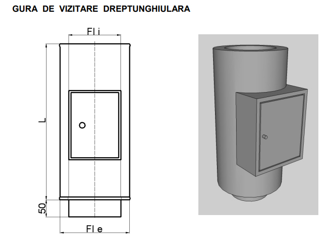 Racord cu usa vizitare rectangulara inox D180 DP izolat NIKO