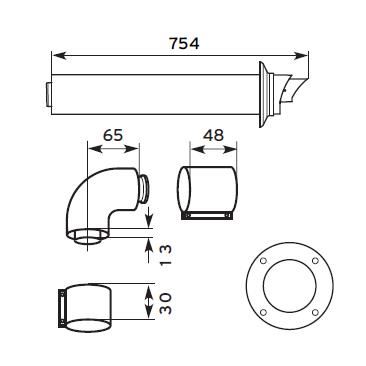 - conducta orizontala pentru trecere prin perete/acoperis cu diametrul 60/100 mm si lungimea de 754 mm